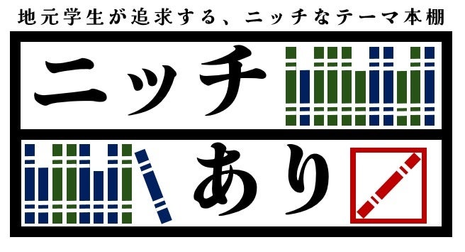 「ニッチ」は、もともと“隙間”や“くぼみ”を指す言葉で、そこから転じて“風変わりな”や“一般的でない”という意味で使われています。この本棚は、湘南台で暮らす大学生が、「いま自分が気になっているニッチなテーマ」を追求・表現するために選書した本棚です。世間や常識の“隙間”を縫う考え方や、普段は自分の心の中にある“くぼみ”にしまっている感覚――彼ら・彼女らのニッチなテーマに共感