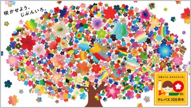 クレパスⓇ発売100周年記念 Webページでは、クレパスⓇのユーザーのみなさんからのお祝いメッセージやクレパスⓇの100年の歴史、今後のイベント情報も随時更新していきます。メインビジュアルの大きな桜の木は、サクラクレパスの社員やそのご家族が思い思いに描いた桜を1つひとつデザインに落とし込み、1本の大きな桜の木をつくり上げました。人々の表現の多様性と描画材料としての無限の可能性を感じさせるビジュアルです。