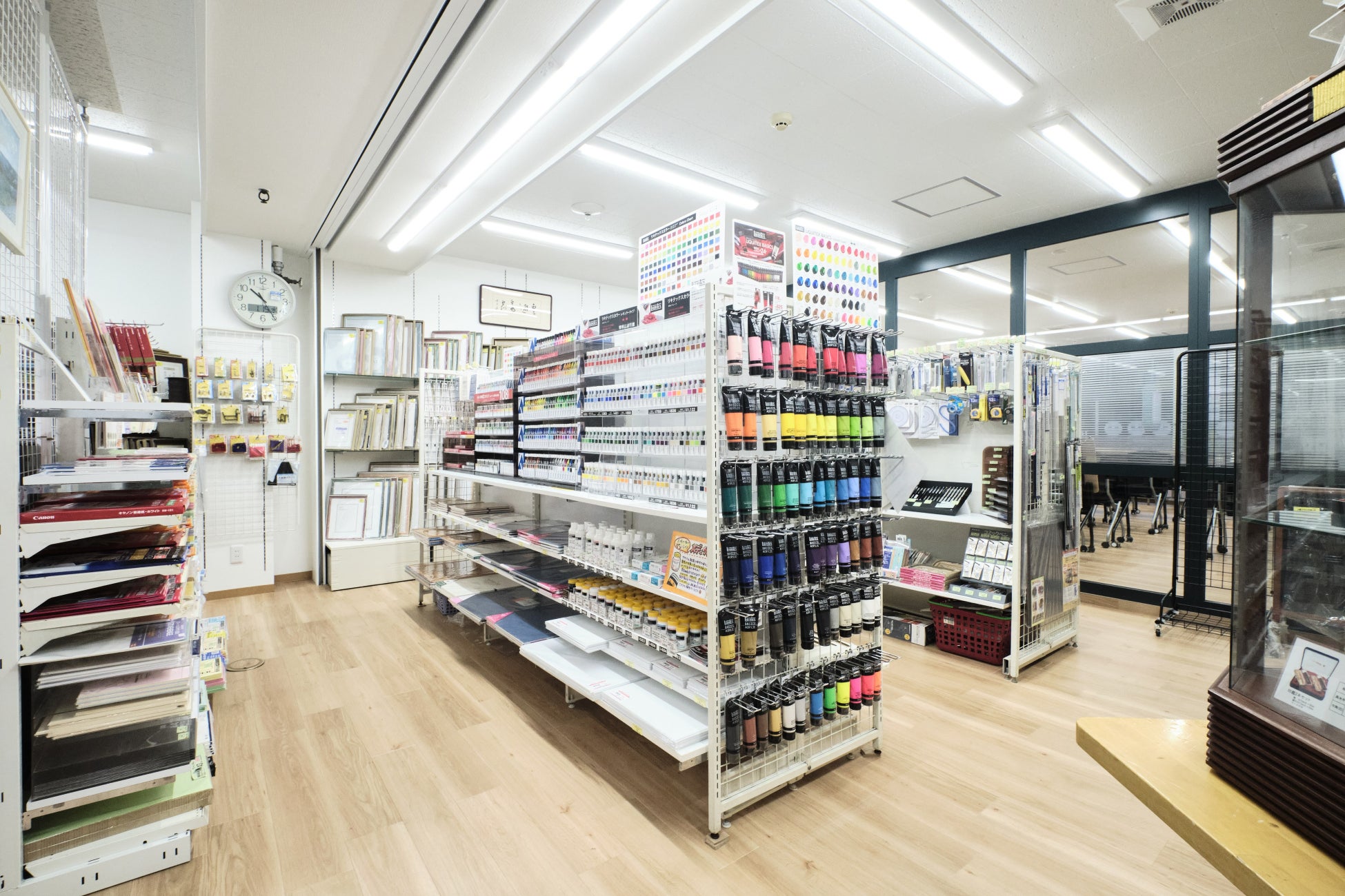 「大人も楽しめる画材」をテーマに、本店2階が生まれ変わりました。アクリル絵具として人気が高い「リキテックス(Liquitex)」や「ホルベイン(HOLBEIN)」など豊富なメーカーのアイテムを新たに取り揃えています。また、額の取り扱いや額装、マット加工など、画材に関わる商品やサービスも提供します。お客様一人一人の声に寄り添い、日々の生活に花を添えるおすすめの画材を集めたコーナーです。