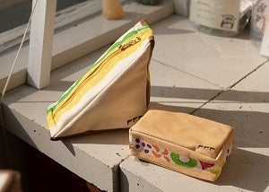 思わず「ぷぷぷ」と笑っちゃう、使うのが楽しくなるおいしい布雑貨を出展。隠し味に遊び心を入れてデザインしています。布は全てオリジナル、食いしん坊な店主が大好物を描いています。一番人気のサンドイッチポーチは、三角、四角、タマゴサンドにフルーツサンドなど約30種類!