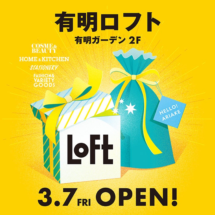 ロフトは、1987年創業以来の精神「時の器」をもとに、雑貨のプロデュースカンパニーとして、旬の雑貨を通じて豊かで健やかな暮らし(ウェルビーイング)に向けた、新しい生活提案を進めています。「有明ロフト」は、デイリーユースとともにトレンドを加味したパーソナルギフトなどロフトならではの売場づくりにより、地元のニーズに応えてまいります。オープニング記念企画としてお買上げ特典も予定しています。