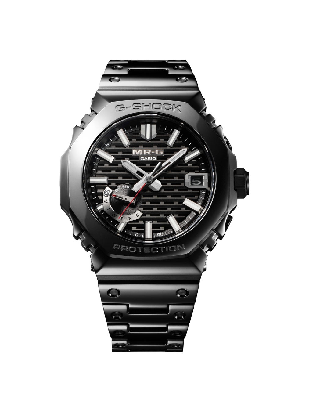 耐衝撃ウオッチ“G-SHOCK”の最上位シリーズ“MR-G(エムアールジー)”より、日本の伝統技術「木組※」の機能美から着想を得た立体的な格子状の文字板を採用したモデルです。先端素材を用いた八角形のベゼルは、細部にまで美しい研磨を施すため、27のパーツに細分化し、木組のように緻密に組み上げています。