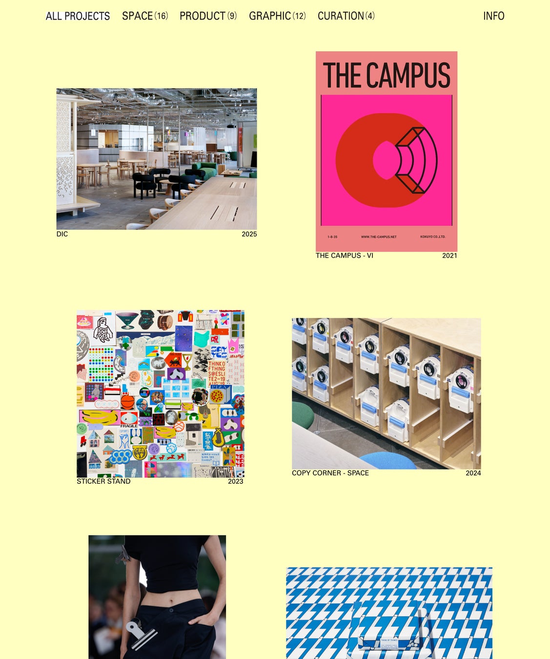プロジェクトを多面的かつ包括的に捉えるために、それぞれのクリエイティブ領域のデザインアプローチを5つのカテゴリー(コンテクスト、スペース、グラフィック、プロダクト、キュレーション)に再編集しました。これにより、YOHAK DESIGN STUDIOによる実験と実践の多様性がよりわかりやすくなりました。