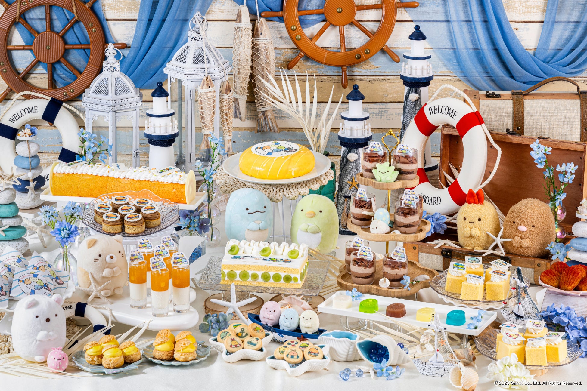 九州で初開催となるすみっコぐらしコラボレーションスイーツビュッフェ「すみっコたちのマリンパーティ」では、マリンスタイルに身を包んだすみっコたちと、すみっコぐらしの「マリンごっこ」のテーマに着想を得た約20種類のスイーツとセイボリー(軽食)をご用意しています。