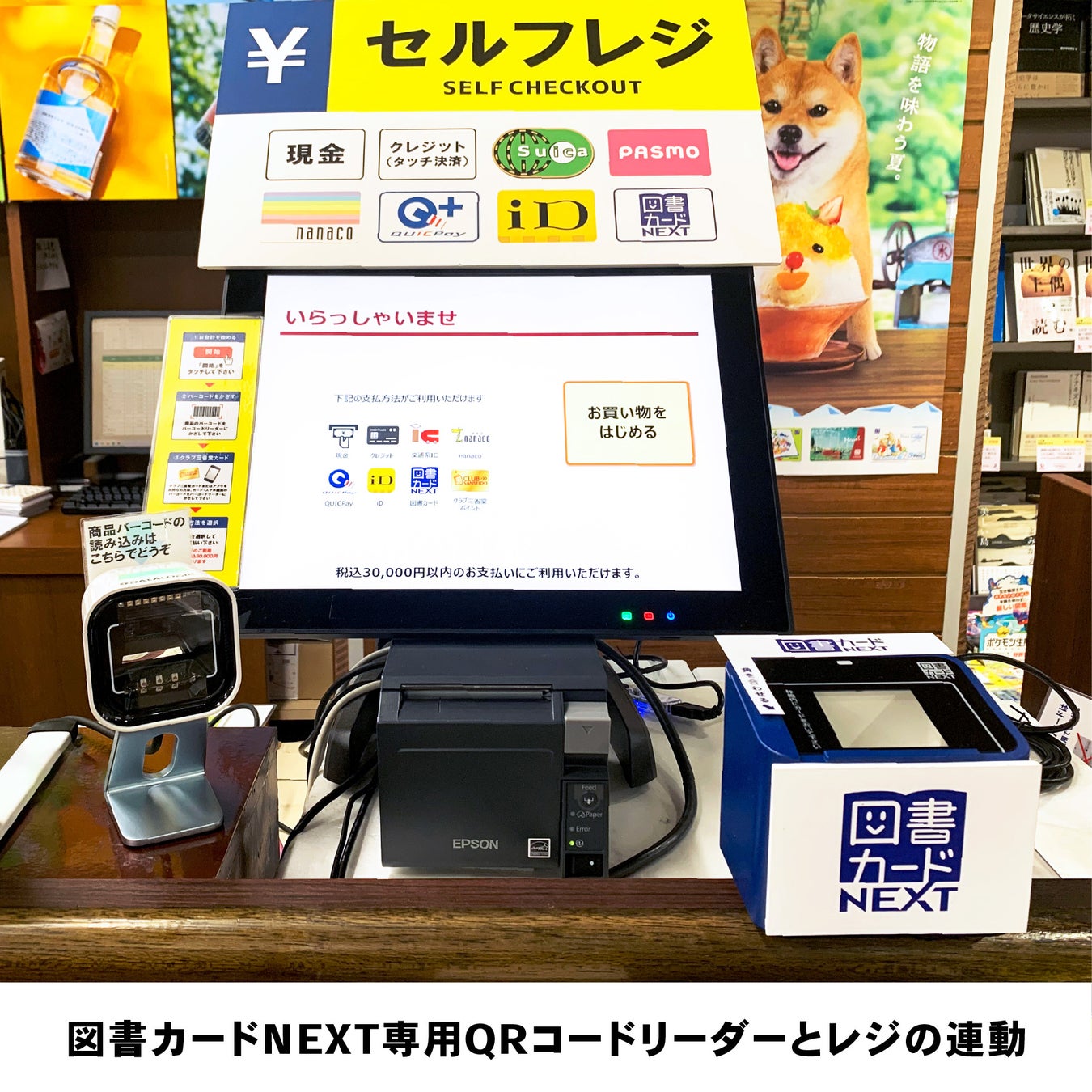 店舗決済の新たなスタンダードとして定着したセルフレジの更なる利便性向上の手段として、図書カードNEXT専用QRコードリーダー連動の運用を開始しました。