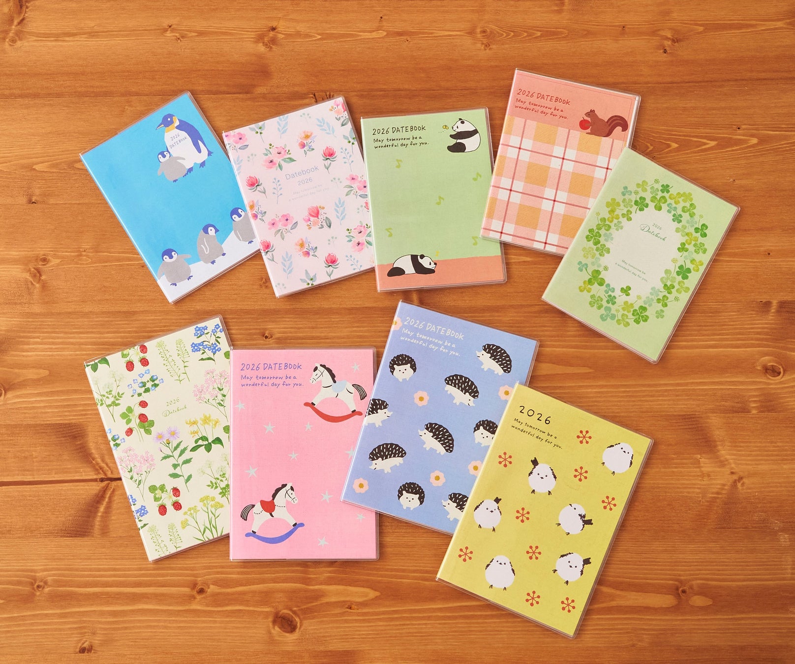 来年の干支でもある馬や、今人気のシマエナガ・パンダ・フラワーなど、秋のダイアリーを彩るふんわり楽しいモチーフを表紙デザインにしました。薄手で軽く、持ち歩きにも便利です。