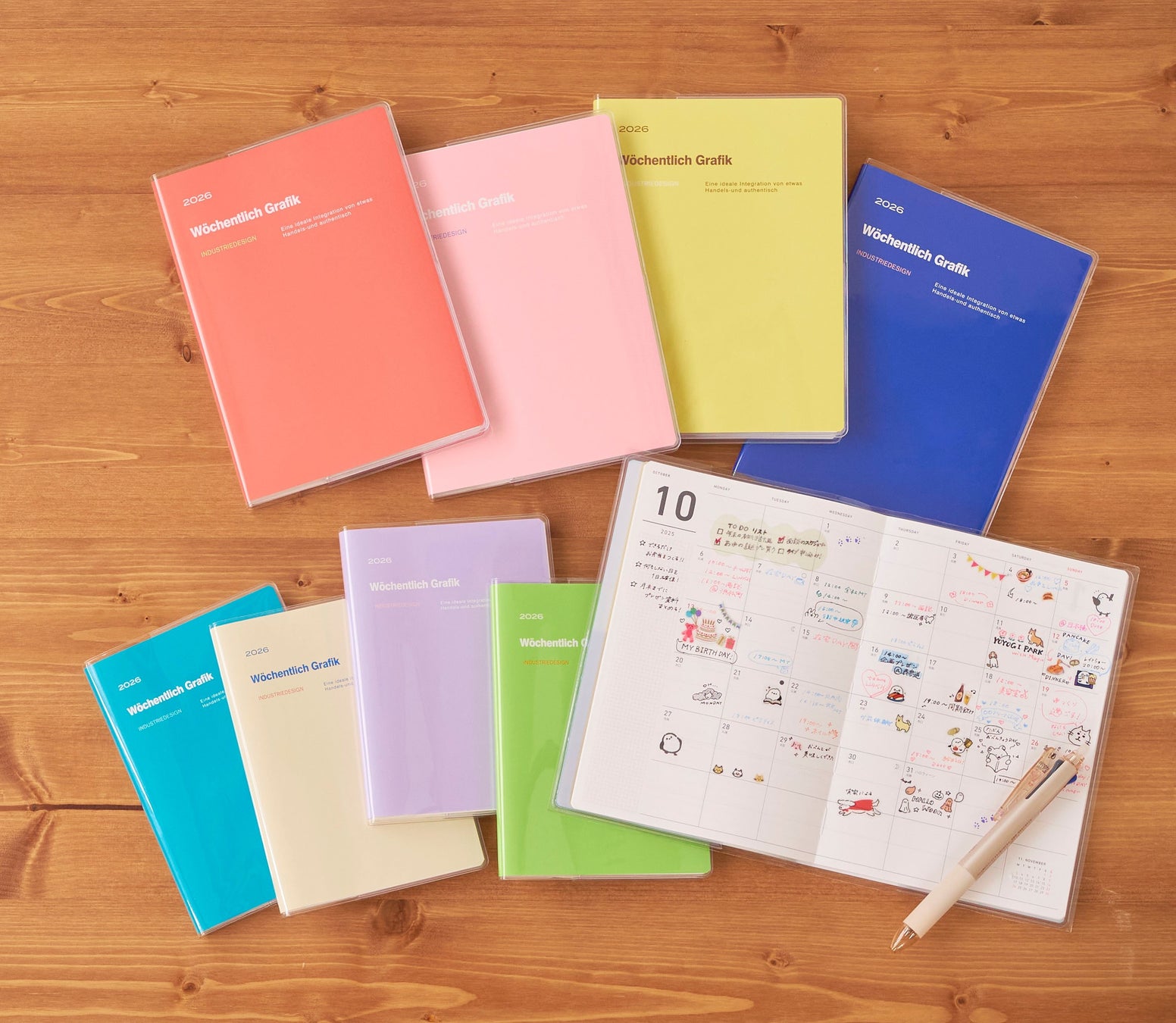 自分の好きな推しカラーやラッキーカラーなど、トレンドカラーが表紙で選ぶのが楽しい10月始まりのダイアリーです。表紙も中身も自由にデコって、ダイアリー作りやライフログ活をお楽しみいただけます。