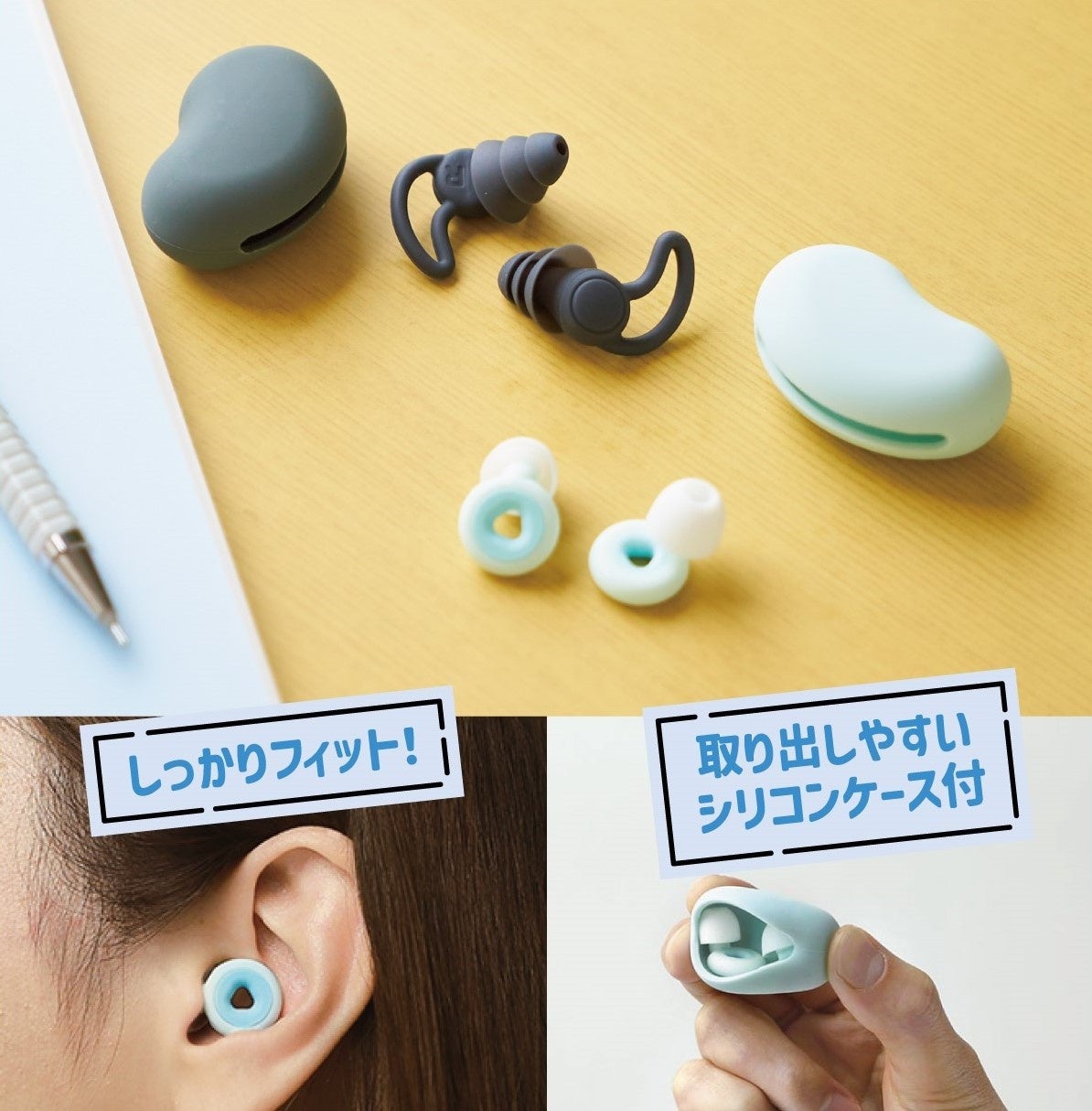 無音と雑音の間、適度な遮音がちょうどいい、三層遮音タイプの耳栓です。人が敏感に感じる高音域の遮音に効果的な設計で、周囲の雑音が気になるときや、勉強の集中スイッチを入れたいときにピッタリです。持ち運びに便利なやわらかシリコンケースが付いています。