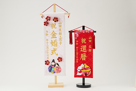 商品の特徴 | 大切な記念日のお祝いに相応しい金襴織生地&刺繍の豪華記念品。 |