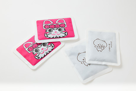 商品の特徴 | カイロ本体に印刷!!使用する間、広告効果が持続!!最小500コから製作。 |