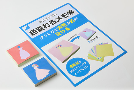 商品の特徴 | サステナブルなメモ帳で、透ける表紙をベースとしているため、使うたびに色の変化を楽しめます。 |