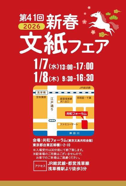 ホーム > オフマガ ニュース一覧 > 文具専門見本市「第41回 2026年新春文紙フェア」2026年1月7日~8日、東京・浅草橋の共和フォーラムで開催