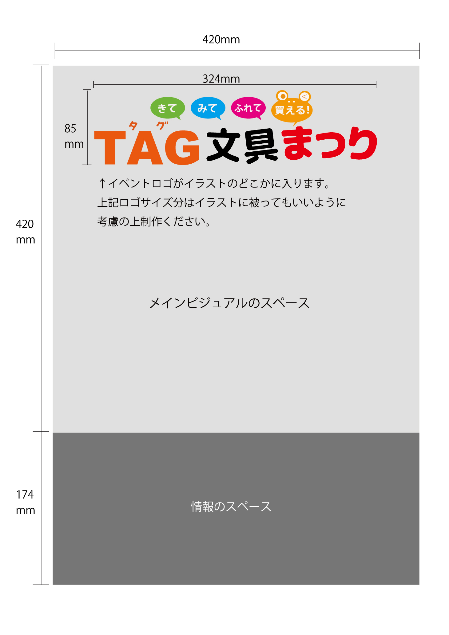 「TAG文具まつりVol.10」メインビジュアルとして、配布物・広告・会場掲載等、当イベントに関連し広く使用します。