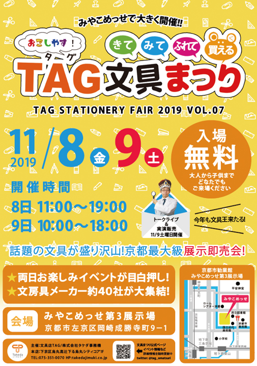 「TAG文具まつり」は、たくさんの文具メーカーがブース出店し、見て・触れて・買える、京都最大級の展示即売会です。