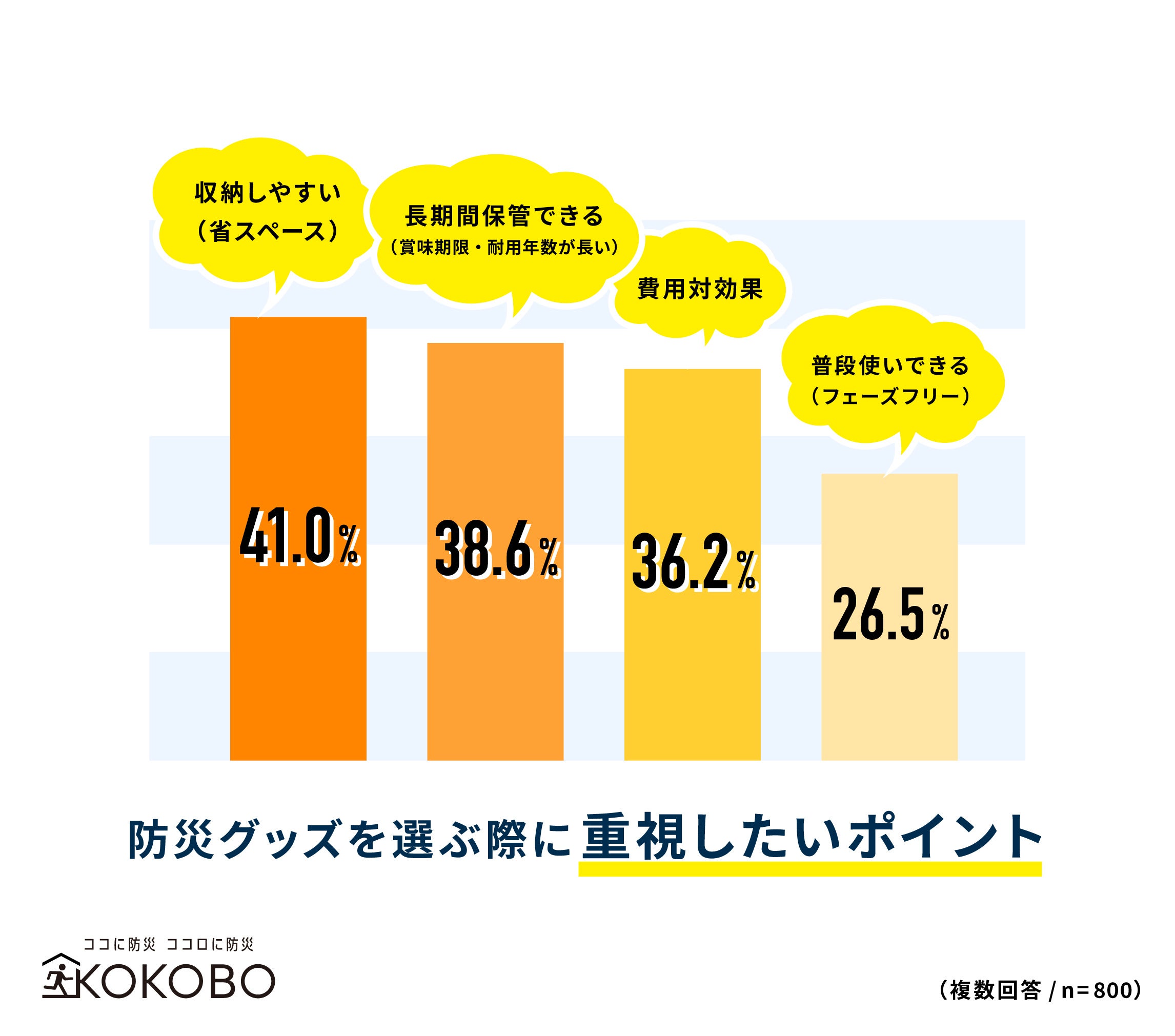 ■ 防災グッズで選ばれる条件は『省スペース・長期保管・コスパ 』