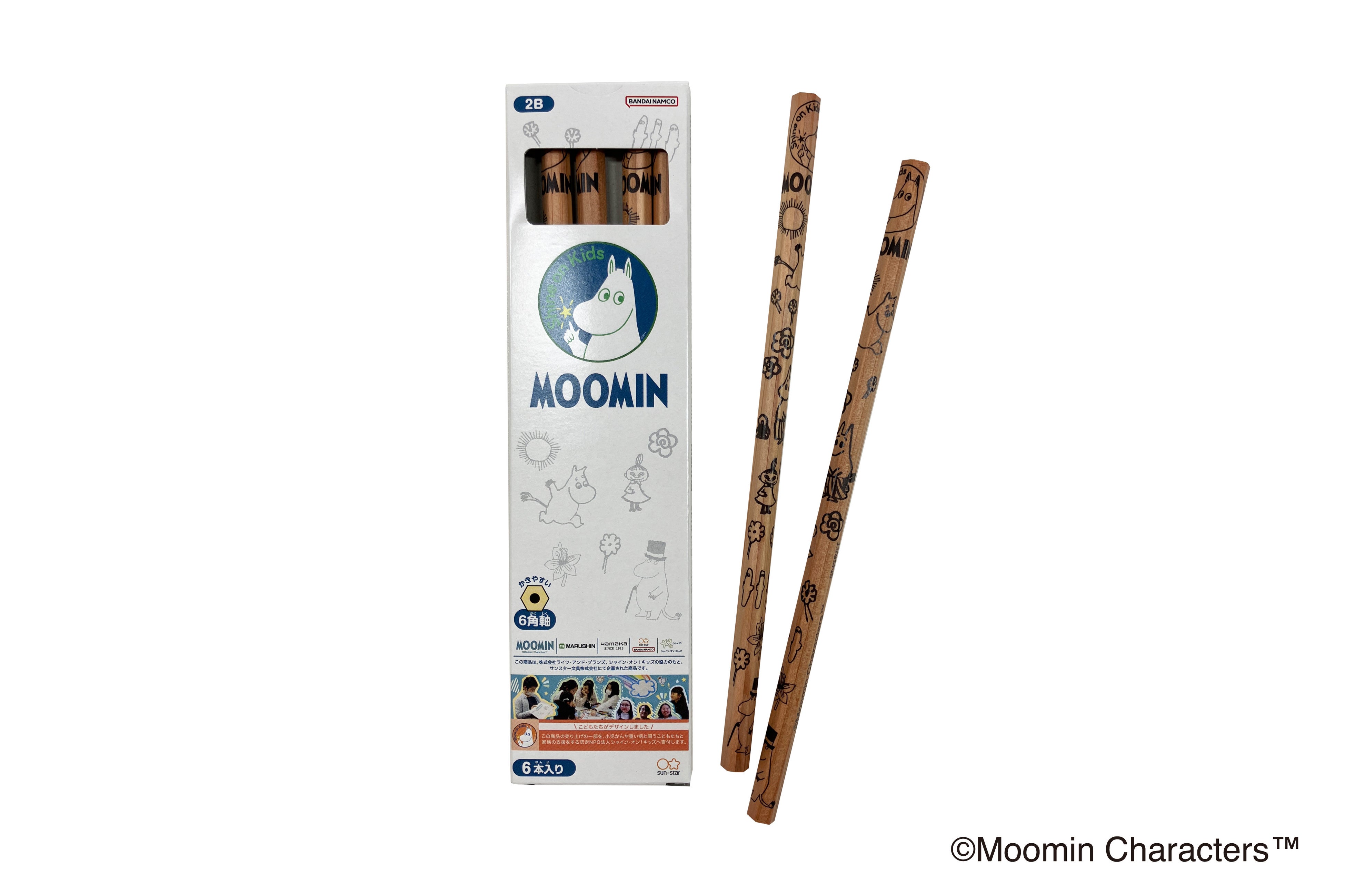 子どもたちが描いた「ムーミン」のイラストをあしらった鉛筆6本セット。学校での学習やお家でのお絵描きなど、毎日のシーンで使いやすいデザインです。