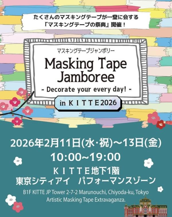 この度、2026年2月11日(水・祝)~13日(金)の3日間、マスキングテープメーカー7社を集めた一般の方向けのマスキングテープイベント「Masking Tape Jamboree(マスキングテープジャンボリー)-Decorate your every day!-in K I T T E 2026」を東京駅に隣接するK I T T E地下1階 東京シティアイ パフォーマンスゾーンで開催します。
