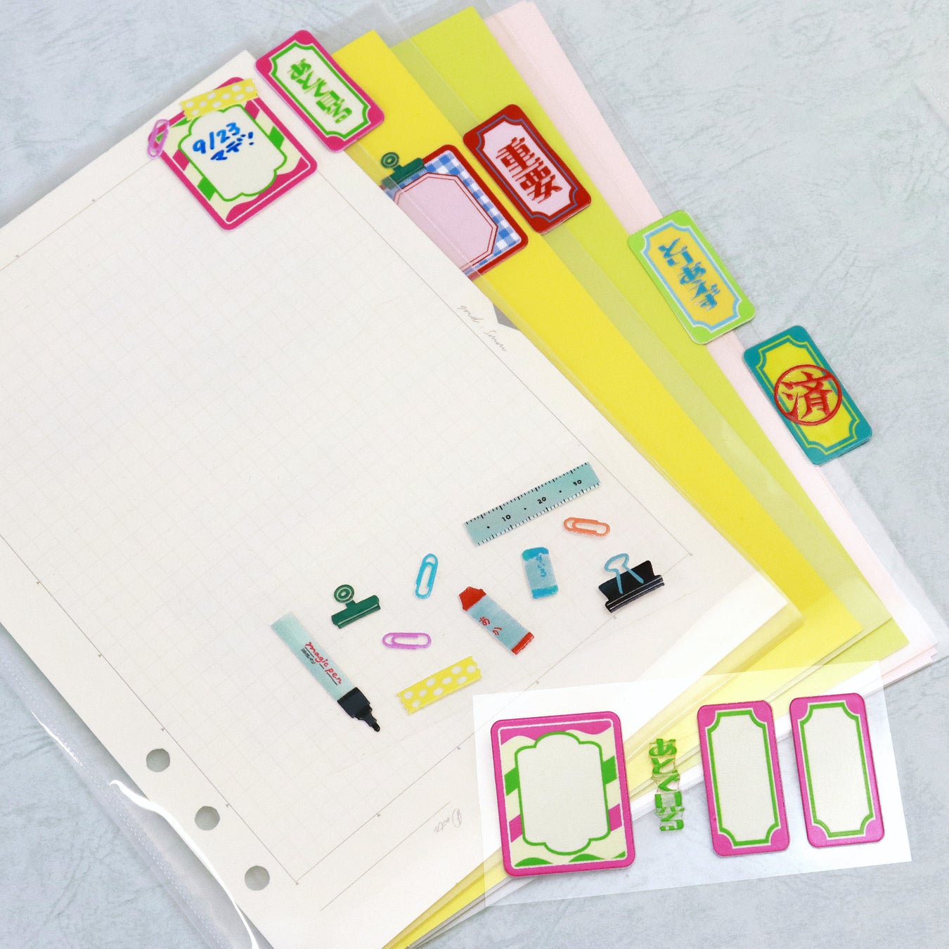 ぷっくりとした質感が特長の新感覚転写シール。ファイルをデコっても、インデックスとして使っても可愛い!手持ちの文具を自分らしくコーディネートできるアイテムです♪