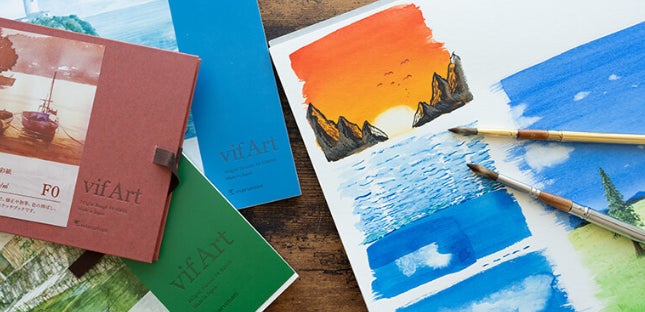 ヴィフアール水彩紙の試筆コーナーやぬりえを設置。水彩色鉛筆や絵具、コピックなどお試しいただけます!