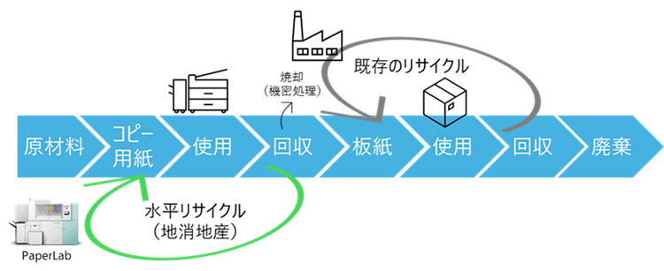 近年、環境意識の高まりやIT化の進展に伴い、ペーパーレス化が推進されています。しかし、紙は依然として私たちの生活に欠かせない存在です。オフィスや自治体では古紙の回収・リサイクルが積極的に行われていますが、コピー用紙を新たなコピー用紙へ再生する「水平リサイクル」は難しく、付加価値が低い板紙などへのカスケードリサイクルが主流です。これには多くの工程やエネルギーを要し、CO2排出量の増加や、多くの時間がかかるといった課題が残っています。また、機密情報保護の観点から、リサイクルされずに焼却処分されてしまう紙も少なくありません。