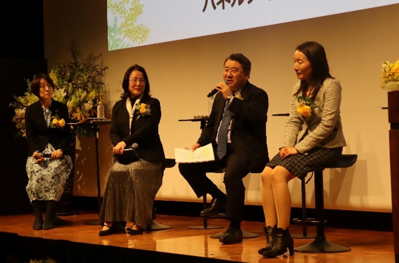 講演会後は、当社常務執行役員CDOルゾンカ 典子、戸田建設株式会社コーポレート本部執行役員 愛宕 和美氏、株式会社パイロットコーポレーション執行役員 小城 真志保氏が登壇し、瀬谷氏も交えて、女性の活躍や海外での事業をテーマにパネルディスカッションを行いました。ディスカッションでは、「女性活躍」という枠組みを超え、多様な人材が活躍できる組織文化の構築について、各業界の視点から活発な議論が交わされました。