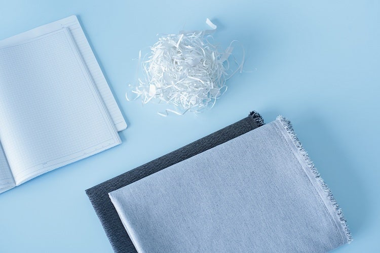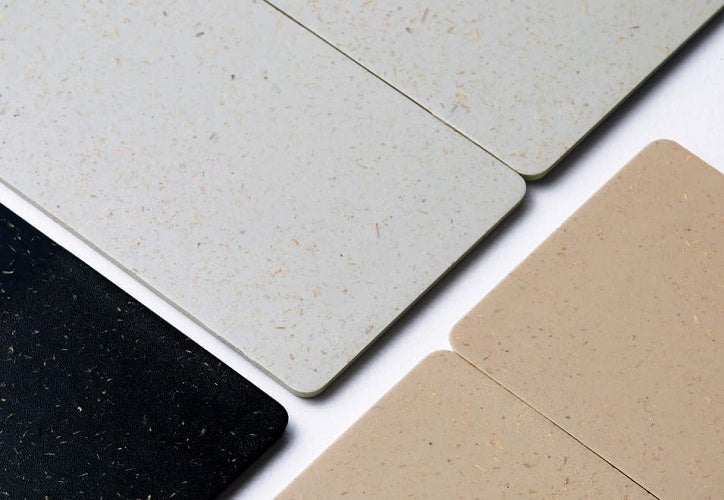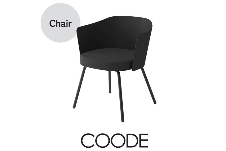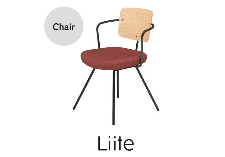 チェアーの背座の張地に紙の再生ファブリック「カミカラ」を採用。コクヨのノートなどの製造工程で生じる端材を使った、再生張地を採用しています。