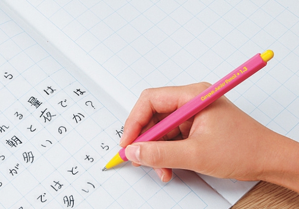 「シャープペンシル<キャンパスジュニアペンシル>」は、正しい持ち方で力を入れて字を書いた際、芯が折れないことに配慮して開発したシャープペンシル。鉛筆と同じ六角形の軸で、鉛筆の筆記時に近い芯径の1.3㎜を採用したことで鉛筆のような書き心地を実現した。