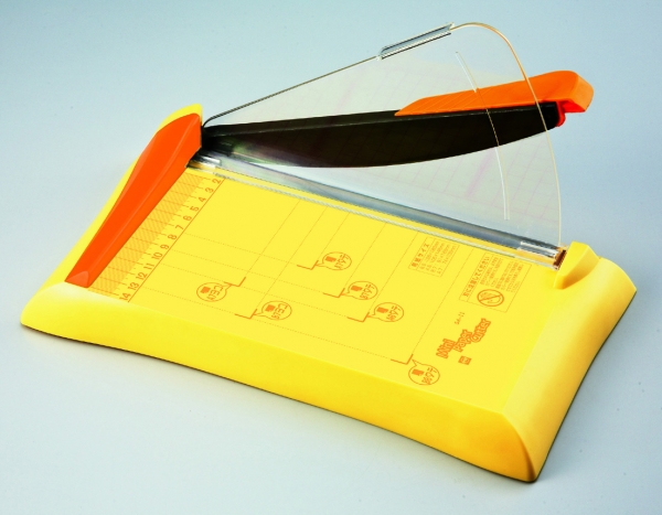 「ミニペーパーカッター」は、オフィスでのチョットした裁断や、写真のトリミング、スクラップブッキングに便利なコンパクトサイズ。裁断巾220mm、裁断能力5枚で、520gの軽量なため女性にも扱いやすい。安全カバーと一体式の紙押さえがついた安全設計なので、指が直接刃に触れるみとがない。