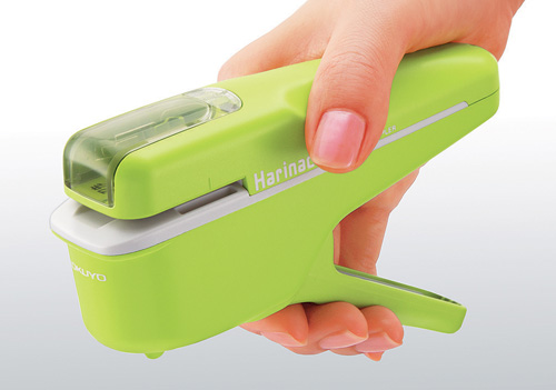 コクヨS&Tは、金属製のホチキス針を使わずに紙をとじることができる針なしステープラーのハンディタイプの第2弾として、業界最多の8枚をとじられる「針なしステープラー<ハリナックス>(ハンディタイプ)」を5月3日に発売する。価格は945円