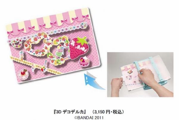 3Dデコデルカ専用カードとデコレーション用シールがセットになった別売りの専用素材2種も同時発売。主なターゲットは6~10歳の女児で、販売ルートは、玩具店、百貨店・量販店の玩具売場など。