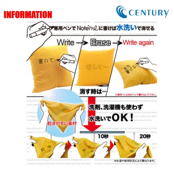 PC周辺機器並びに携帯アクセサリーメーカーのセンチュリーは、付属の専用ペンを使って書いたものを洗濯機や洗剤を使用せずに、水を流すだけで消すことが出来る不思議なクッション「お絵かきクッション Note me」の販売を開始した。イエロー、オレンジ、レッド、グリーン、ホワイトの5色。4,980円