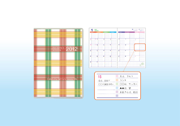 ホーム > 新製品情報・特集 > ナカバヤシ、家族の予定を一目で確認ができる「ノートダイアリー2012 A5」を発売 6色のカラー分類で、家族の予定や項目の多い用件も一目瞭然