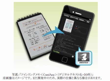 コクヨS&Tは、スマートフォン対応ノート「CamiApp(キャミアップ)」シリーズを拡充し、データ化のオンラインサービスなどを提供するオーリッドのセキュアで高精度の文字認識を実現するデジタルテキスト化オンラインサービス「O-RID KYBER(オーリッド カイバー)」が利用できる専用スマートフォンアプリ「KYBER」専用メモ「ツインリングメモ<CamiApp>(デジタルテキスト化・50件)」を、12月29日から数量限定で発売しする。735円。