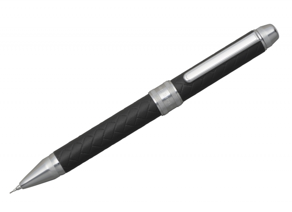 プラチナ万年筆は、編み目柄(バスケットパターン)型押しの牛本革を軸に巻いた1 本で3 機能の多機能筆記具(シャープペン+ボールペン2 色)を発売した。