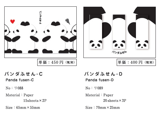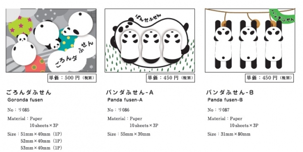 アイテムは「ごろんダふせん」「パンダふせんA」「パンダふせんB」「パンダふせんC」「パンダふせんD」の5種類。税込価格は420円~525円。