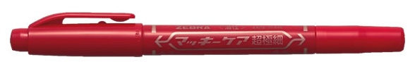 「マッキーケア超極細」は、極細タイプ(0.7mm)よりも細い超極細0.3mm。価格は126円、インク色赤・青・黒の3色展開となっている。