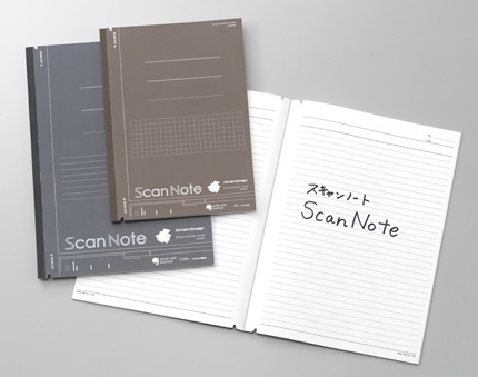 「スキャンノート」には、背付近にミシン目と上下の切込みが入っており、カッターや裁断機を使わずに簡単に複数枚のノートを裁断(切り取り)でき、「ScanSnap」やオフィスの複合機でまとめてスキャンできる。表紙とは別に「ノートのタイトル」「使用期間」などを書き込める「扉紙」が付いていて、ノートと一緒にスキャンすることで、パソコンのサムネイル上でもノートの検索が容易にできる。