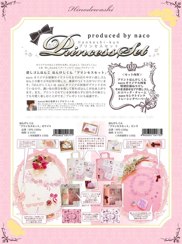 ホーム > 新製品情報・特集 > ヒノデワシ、消しゴムはんこアーティスト・nacoプロデュースのはんけしくん「プリンセスセット」発売