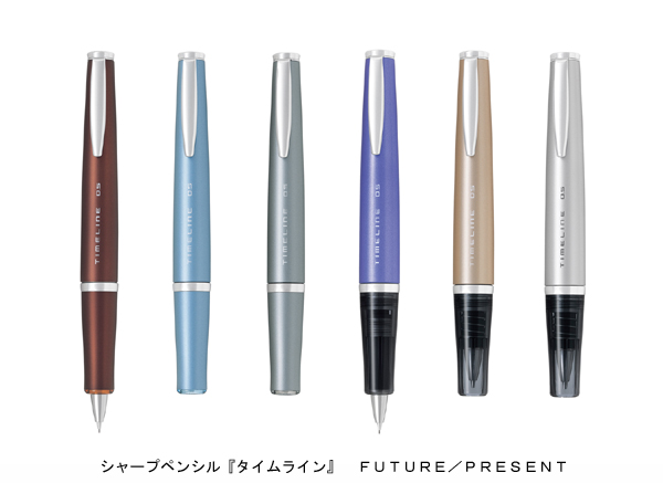 2005年10月発売のボールペン「タイムライン」のデザインをベースにし、新しい操作性を持つシャープペンシル。ペン先の繰り出しには、ボールペンで搭載した「ダブルアクション繰り出し機構」を応用。ボディを捻ることで口金・ペン先があらわれ、さらに捻るとノック可能状態になり、ボディ後部をノックすると芯が繰り出される。芯径は、FUTURE、PRESENTとも最もスタンダードな0.5㎜を使用。