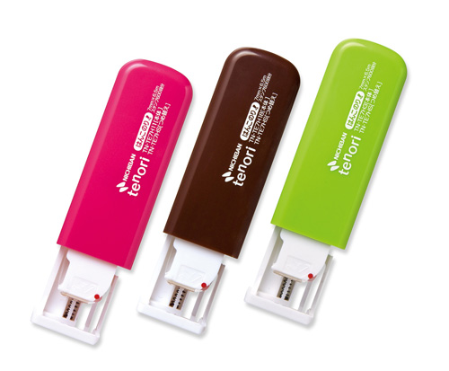 ボディーカラーは、グリーン、ピンク、茶、各420円。つめ替え用テープは、262円。