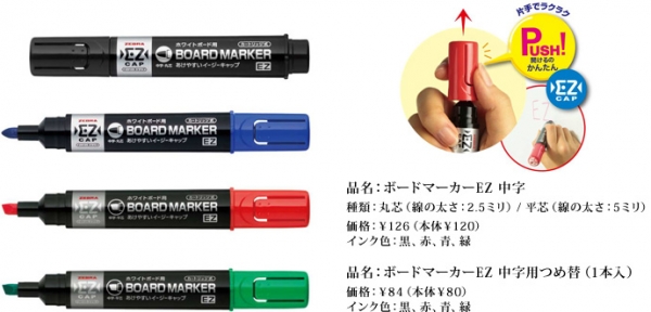 ホーム > 新製品情報・特集 > ゼブラ、キャップの両サイドをつまむだけ 片手でラクラク開けられる「ボードマーカーEZ(イージー)」発売
