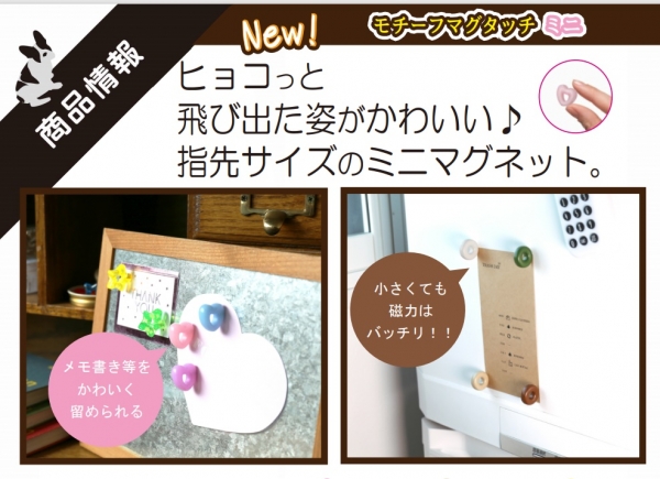 ホーム > 新製品情報・特集 > ベロス、「モチーフマグタッチミニ」発売 ヒョコっと飛び出た姿がかわいい♪指先サイズのミニマグネット