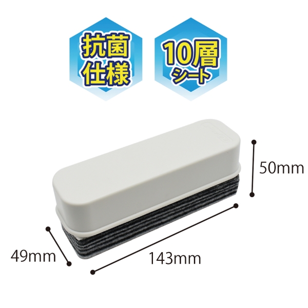 ホワイトボード用のイレーザーは、多くの方が共有して使うので、このコロナ禍において使うのに躊躇してしまう方も多かったのではないでしょうか。新商品の「抗菌はがせるイレーザー」は、そんな不安を解消します!抗菌ABSを使用しているので菌の繁殖を抑制し、安心して使用できます。10層のはがせるシートは汚れたら剥がして捨てるだけなので清潔に保てます。