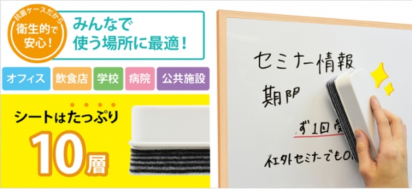 ホーム > 新製品情報・特集 > マグエックス、ホワイトボード用「抗菌はがせるイレーザー」発売 10層のはがせるシートを汚れたらはがす