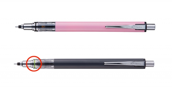 | 『アドバンス』限定軸色 左から:PTブルー(芯径:0.3mm)、MNピンク、SFブラック(芯径:0.5mm) |