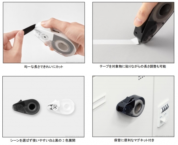 『クイックテープカッター』は、テープを同じ長さで送り出し、軽い力できれいにカットできるマスキングテープ専用カッターです。マスキングテープを使用する際に、切り口が見つけにくい、手でちぎると切り口が汚くなってしまう、均一な長さでカットしにくい、といったさまざまな不便を解消するアイテムとして新たに開発しました。