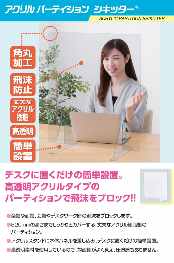 ホーム > 新製品情報・特集 > セキセイ、デスクに置くだけ、高透明の飛沫感染防止対策「アクリル パーティション シキッター(R)」