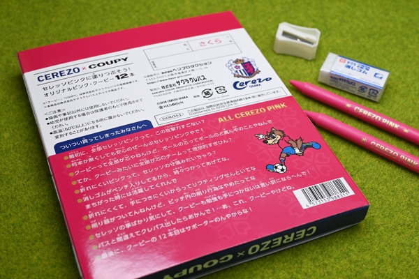 今回のコラボクーピーは、12本全てクラブカラーのピンクにこだわり、一から調合して色味調整を行った特別な「セレッソピンク」となっております。クーピー本体にはオリジナルの刻印も入っており、その他パッケージデザインの細部に至るまで、セレッソ大阪ファン・サポーターの皆様に向けたこだわりのグッズとして企画・商品化いたしました。