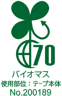 「ストアテープ(大巻)」はセロテープ®と同じ素材であることから、「セロテープ® ストアテープ」として製品名とパッケージをリニューアルします。セロテープ®は、主な原料が植物由来の天然素材で作られています。セロハンは再生可能な植物資源である樹木(木材パルプ)を原料とした、天然素材のフィルムです。粘着剤の主原料には天然ゴムや天然樹脂を、巻心には再生紙を使用しています。パッケージは「セロテープ®」と同じく人と地球へのやさしさを表現した丸みを帯びたデザインに順次変更します。また、テープ本体のバイオマス度70%を示すバイオマスマークを表示します。
