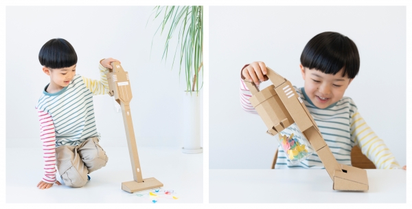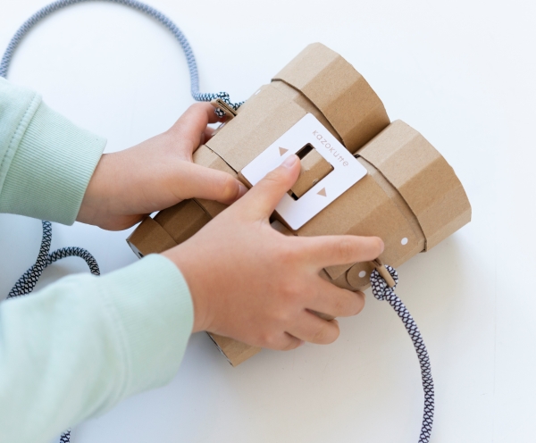 世の中には、子どもひとりでだけで遊べるおもちゃや、ひとりで作れる工作キットもあります。しかし、この工作キットはあえて少し難易度をあげています。家族でコミュニケーションをとり、試行錯誤しながら世界にひとつだけの作品を作ることができます。ダンボール工作キット第3弾は「双眼鏡」と「掃除機」。第2弾の「ギター」「キャンディマシン」も好評発売中!